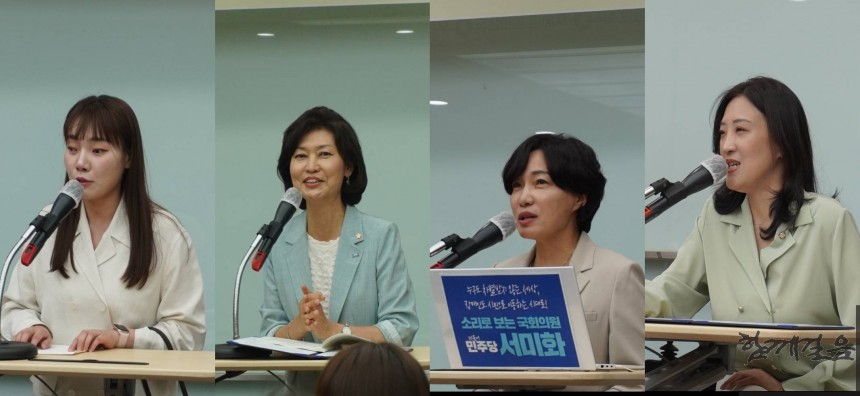 △ 발언하는 의원. 왼쪽부터 김예지 의원, 강경숙 의원, 서미화 의원, 최보윤 의원