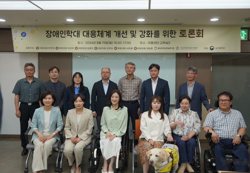 지난 2024년 8월 19일, 여의도 이룸센터 교육실 2에서 ‘장애인학대 대응체계 개선 및 강화를 위한 토론회’가 개최되었다. 토론회는 중앙장애인권익옹호기관과 한국장애인권익옹호기관협회를 비롯해 박주민 의원, 강선우 의원, 김예지 의원, 강경숙 의원, 서미화 의원, 최보윤 의원이 공동 주최하였다.
