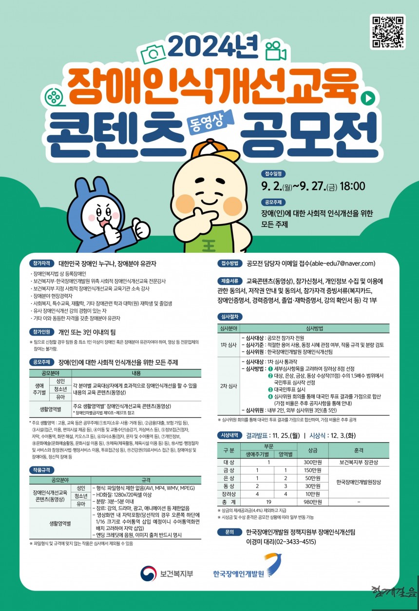 2024 장애인식개선 콘텐츠 공모전, 9월 2일부터 작품 접수