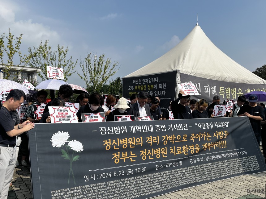 춘천 ㅇ병원, 인천ㅅ병원, 부천ㄷ병원 등 최근 정신의료기관 내 격리·강박에 따른 사망사고가 언론을 통해 우리 사회에 알려지게 된 가운데, 관련 문제가 과거부터 존재해왔으나 아직까지 근본적인 해결이 되지 않고 있어 8월 23일 ‘정신병원개혁연대’가 출범했다. 고문과 다를 바 없는 격리·강박을 몰아내기 위해 정신장애 관련 단체들이 힘을 모아 연대체를 꾸리기로 한 것.