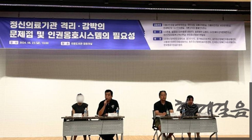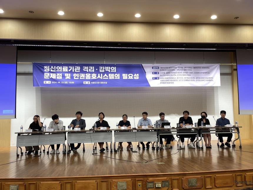 이날 오후에는 ‘정신의료기관 격리·강박의 문제점 및 인권옹호 시스템의 필요성’을 주제로 한 토론회가 국회도서관 대회의실에서 진행됐다. 국민의힘 김예지 의원, 더불어민주당 서미화·남인순 의원, 조국혁신당 김선민 의원, 기본소득당 용혜인 의원이 공동주최하고 사단법인 장애우권익문제연구소 등 6개 단체가 주관한 본 토론회에서는 최근 정신병원에서 격리·강박을 당해 죽음에 이른 고인의 유족들의 증언과 유사한 경험을 한 당사자들이 증언을 통해 국내 정신병원의 반인권적인 실태에 대해 이야기했다.