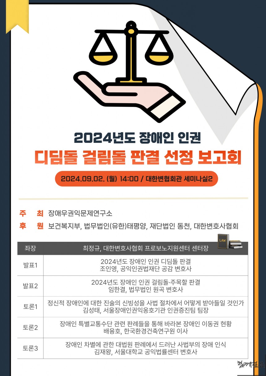 2024년도 장애인 인권 디딤돌·걸림돌 판결 선정 보고회 9월 2일 개최