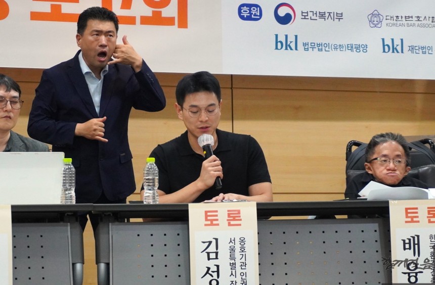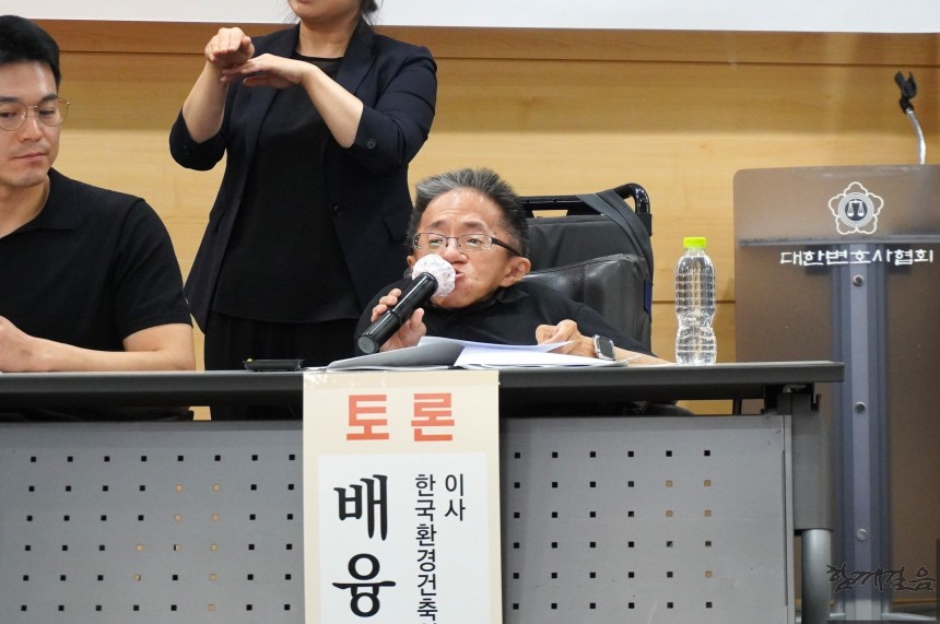 토론은 최정규 대한변호사협회 프로보노지원센터 센터장이 좌장으로, 김재왕 서울대학교 공익법률센터 변호사, 김성태 서울장애인권익옹호기관 팀장, 배융호 한국환경건축연구원 이사가 토론자로 참석해 진행되었다.