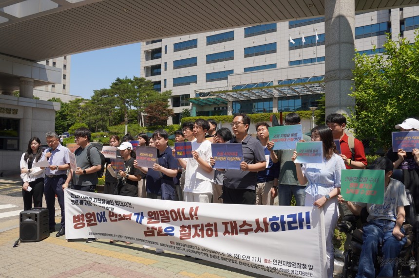 이에 6월 18일 오전 11시 장애우권익문제연구소, 인천장애인차별철폐연대, 한국정신장애인연합회 등 12개 단체는 인천지방검찰청 앞에서 정신병원에 대한 검찰의 불기소 처분을 규탄하는 기자회견을 개최했다.