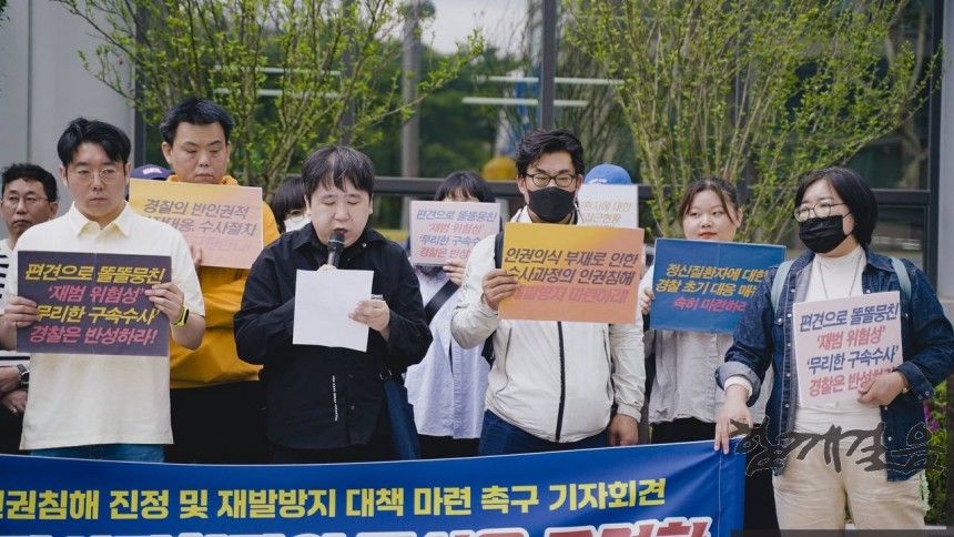 마지막으로 “당사자에게 정확한 혐의와 절차에 대해 설명하고 신뢰관계인 동석 등을 통해 불리한 진술이 이루어지지 않도록 보장해야 하는 것은 경찰의 의무일 뿐만 아니라 정신질환자인 당사자의 권리”라며 “하지만 경찰은 정신질환자의 위험성이라는 편견에 갇혀 범죄 혐의를 입증하는 것에만 천착하며 당사자의 방어권, 사법 접근권, 신체의 자유, 인격권을 모두 침해했다”고 규탄했다.