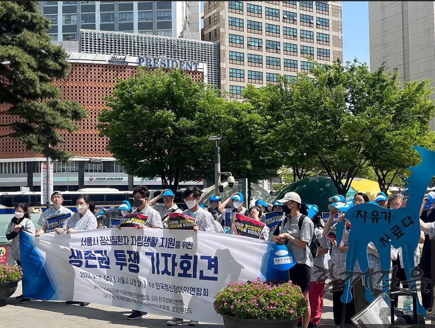 한국정신장애인연합회(이하 ‘한정연’)는 5월 17일, 서울 시청 앞에서 ‘서울시 정신질환자 자립생활을 위한 생존권 투쟁 기자회견’을 진행했다.