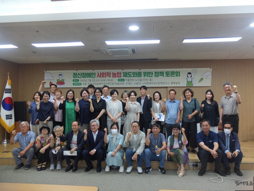 오늘 7월 5일 이룸센터 누리홀에서 사단법인 장애우권익문제연구소(이하 연구소)는 국회 ‘민주주의와복지국가연구회’, 협동조합 행복농장과 함께 <정신장애인 사회적 농업 제도화를 위한 정책 토론회>를 개최하였다.