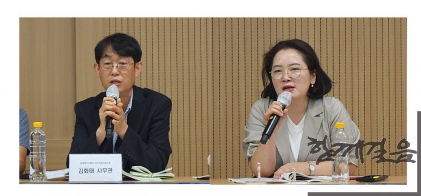 ▲ 토론회에 참석한 정부관계자. 왼쪽부터 농림축산부 농촌사회서비스과 김화태 사무관, 보건복지부 정신건강정책과 전명숙 과장 ⓒ함께걸음