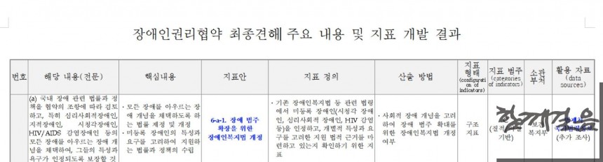 △ 장애인권리협약 최종견해 주요 내용 및 지표 개발 결과 초안 내용 일부 발췌 ⓒKDF