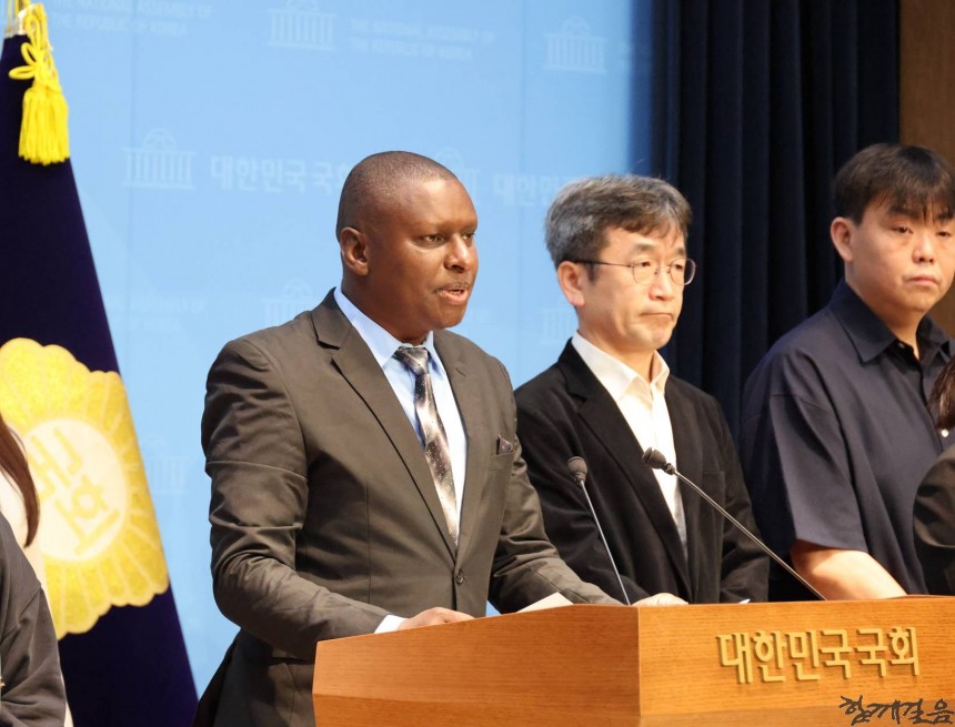 ▲ 기자회견에서 발언 중인 은조로게 사무엘 대표 ⓒ김예지 의원실