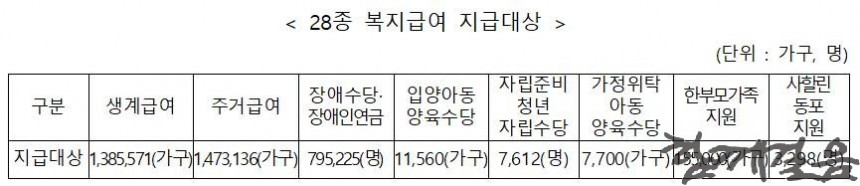 조기지급 대상은 생계급여와 주거급여를 비롯해 장애수당·장애인연금, 입양아동 양육수당, 자립준비청년 자립수당, 가정위탁아동 양육수당, 한부모가족 지원, 사할린동포 지원 등 총 4개 부처 소관 28종 복지급여로, 보건복지부·국토교통부·성평등가족부·재외동포청이 함께 참여한다.