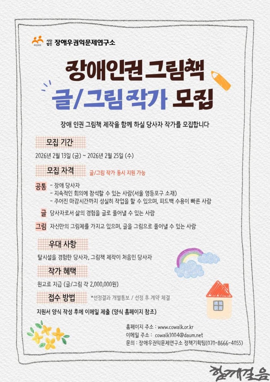 장애우권익문제연구소, 2026년 장애인권 그림책 작가 모집