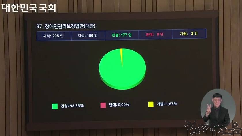 ▲제434회 국회 제07차 본회의에서 통과된 장애인권리보장법안(출처. 대한민국 국회)